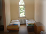Pokoje w budynku są od 2 do 5 osobowych z umywalkami, sanitariaty na kondygnacjach.